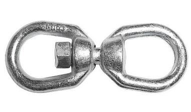 Вертлюг изготовлен из оцинкованной углеродистой стали и предназначен как соединительное звено между двумя тросами, цепями, позволяющее каждому из них вращаться вокруг своей оси. предотвращая их от скручивания.