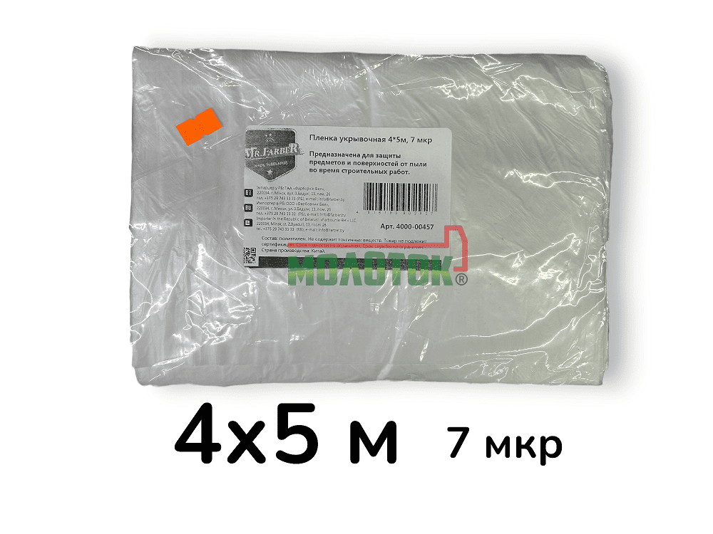 Изготовлена из полиэтилена высокого давления, обеспечивает базовую защиту поверхностей от пыли, краски и других загрязнений.