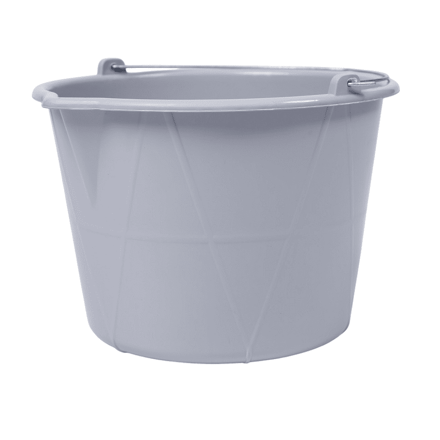 Продольное большое ребро по центру ведра и ребра в виде диагоналей (с наружной части) добавляют прочность при замесе специальными инструментами строительных смесей (миксерами, дрелями и т.п.).