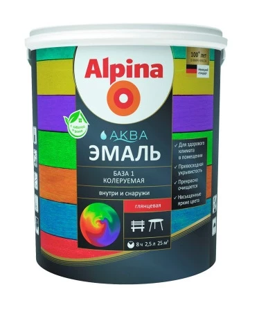 Эмаль акриловая ALPINA Аква база 1 обладает превосходной укрывистостью и светостойкостью для создания идеальных покрытий. Создает поверхность, которая легко очищается.