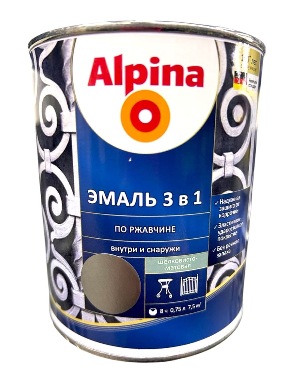 Эмаль алкидно-уретановая ALPINA По ржавчине 3 в 1 RAL 9023 серебро 0,75 л - антикоррозионная эмаль для поверхностей из черных металлов с возможностью нанесения на оцинкованную поверхность.