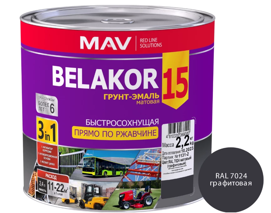 Назначение: для автомобилей, ворот, металлических изделий, металлической мебели, металлоконструкций, ограждений, радиаторов, станков, стеллажей; наносится прямо по ржавчине