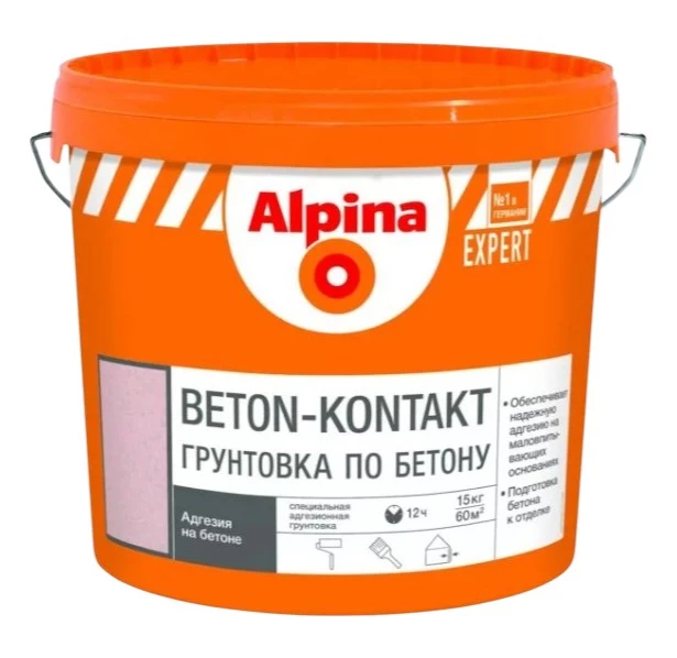 Alpina Expert Бетон-Контакт — прекрасное решение для подготовки бетонных поверхностей к последующей обработке и создания надёжного промежуточного сцепляющего слоя при внутренних или наружных работах.