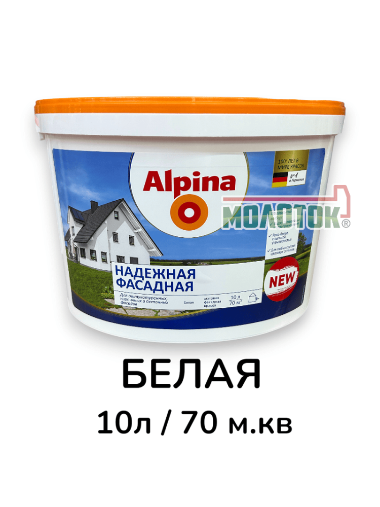 Профессиональная фасадная краска Alpina Надежная представляет собой высококачественное матовое покрытие на водно-дисперсионной основе, специально разработанное для защиты и декорирования фасадов зданий.