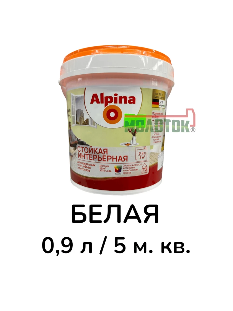 Краска Alpina ВД-ВАЭ — стойкая интерьерная краска (База 1) для помещений с нормальной влажностью, которая отлично подходит для создания долговечного матового покрытия.