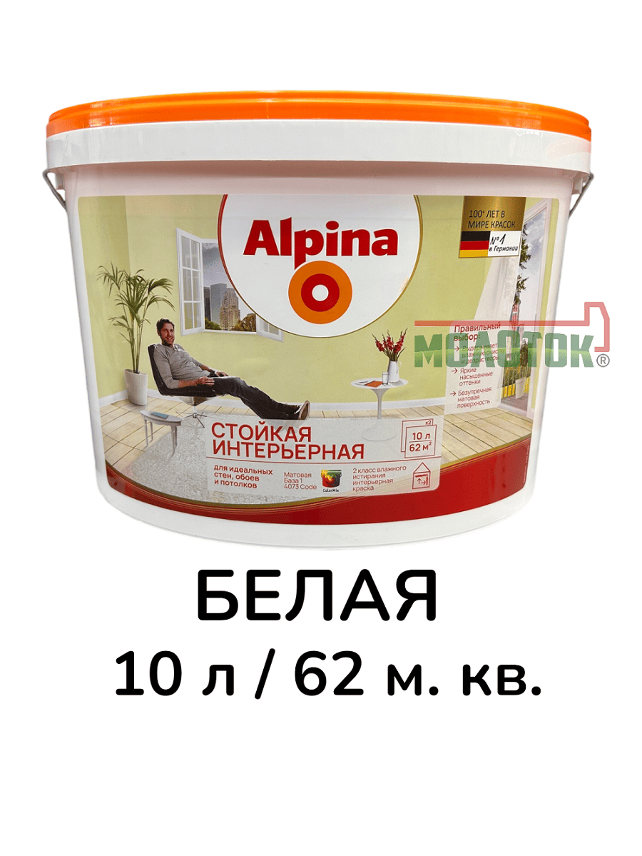 Краска Alpina ВД-ВАЭ - стойкая интерьерная краска (База 1) для помещений с нормальной влажностью, которая отлично подходит для создания долговечного матового покрытия.