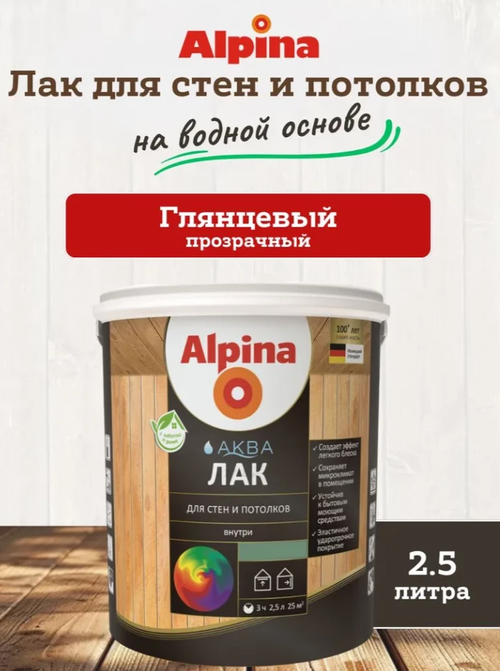 Лак акриловый водно-дисперсионный Alpina Аква Лак для стен и потолков.