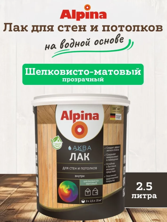 Alpina Аква - специальный лак на акриловой основе для декоративной отделки и защиты деревянных поверхностей внутри помещения.
