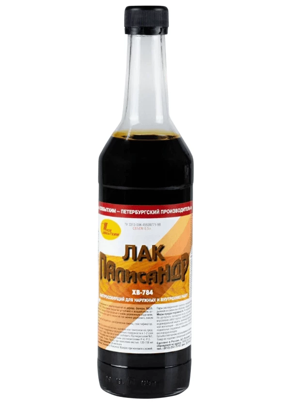 Лак ХВ-784 палисандр 0,5л. Предназначен для тонирования и защиты деревянных изделий, эксплуатирующих внутри и снаружи помещений.