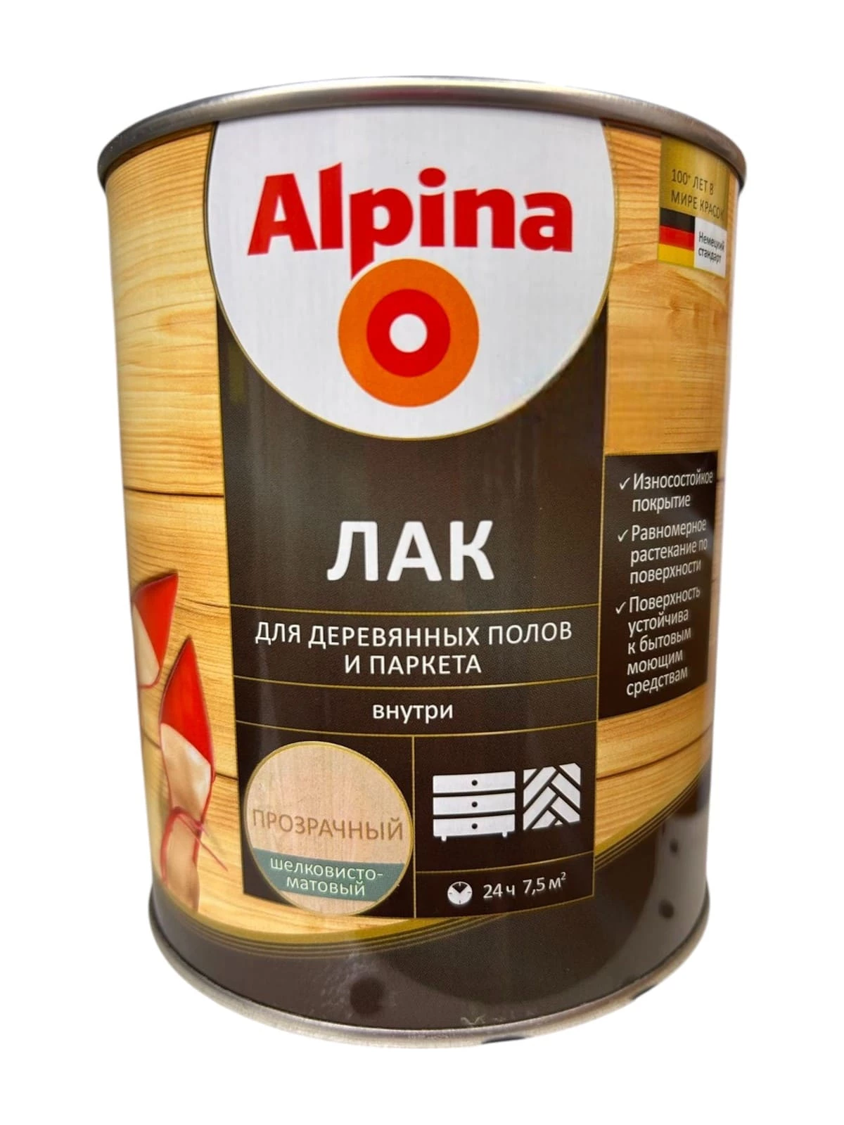 Лак алкидно-уретановый ALPINA Для деревянных полов прозрачный 0,75 л создает защитное покрытие паркетных полов, лестниц, а также других деревянных поверхностей внутри помещения, подвергающихся механической нагрузке.
