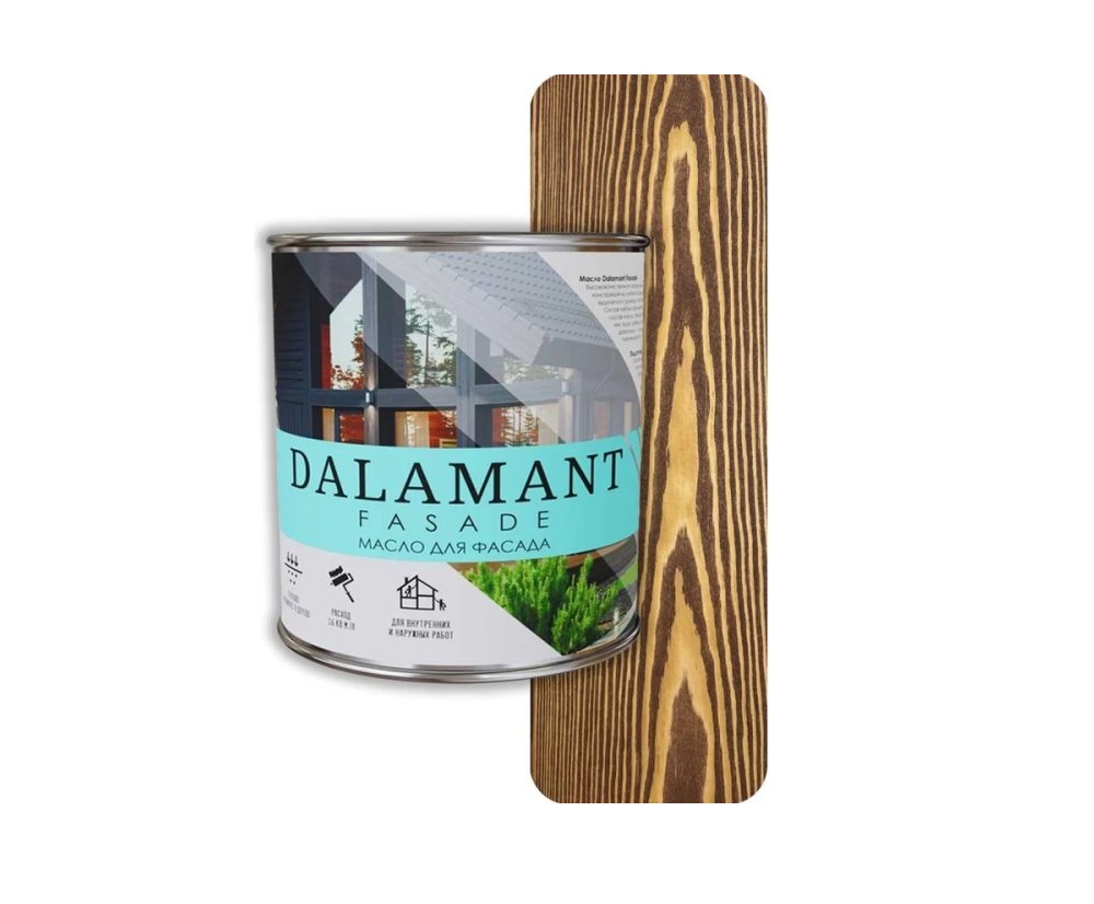 Натуральное масло DALAMANT Fasade в оттенке «орех Гварнери» — высококачественное финишное покрытие для наружных деревянных конструкций.