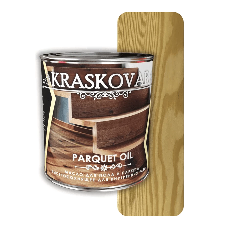 Kraskovar Parquet Oil — быстросохнущее масло на натуральной основе для финишной обработки деревянных полов и паркета.