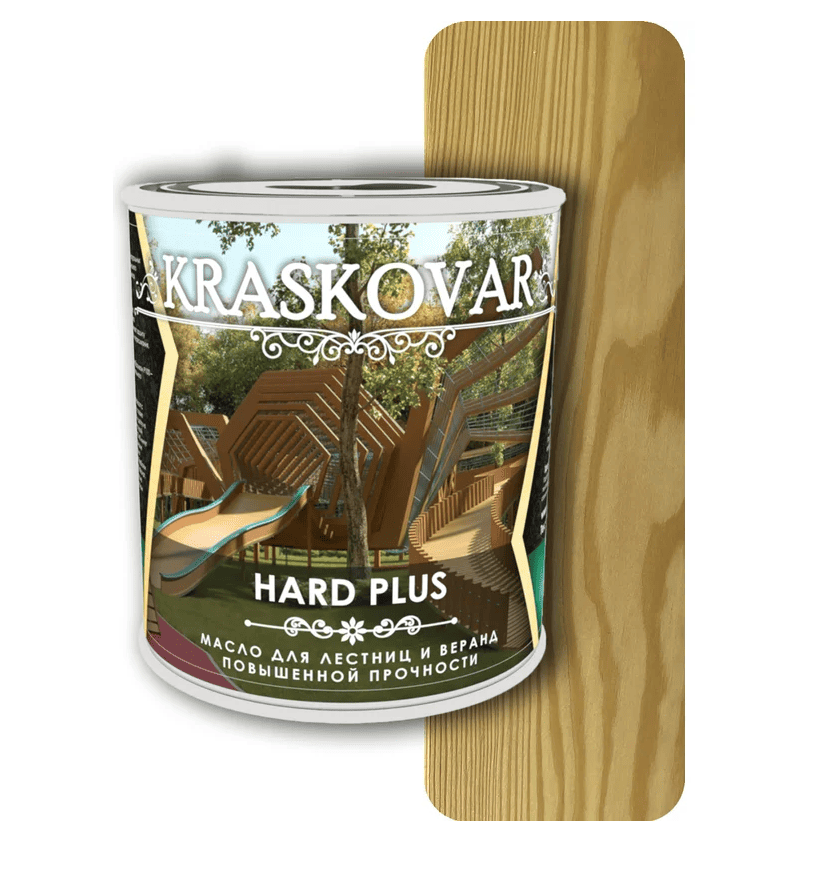 Kraskovar Hard Plus — масло повышенной прочности для защиты деревянных поверхностей, подверженных интенсивным механическим нагрузкам.