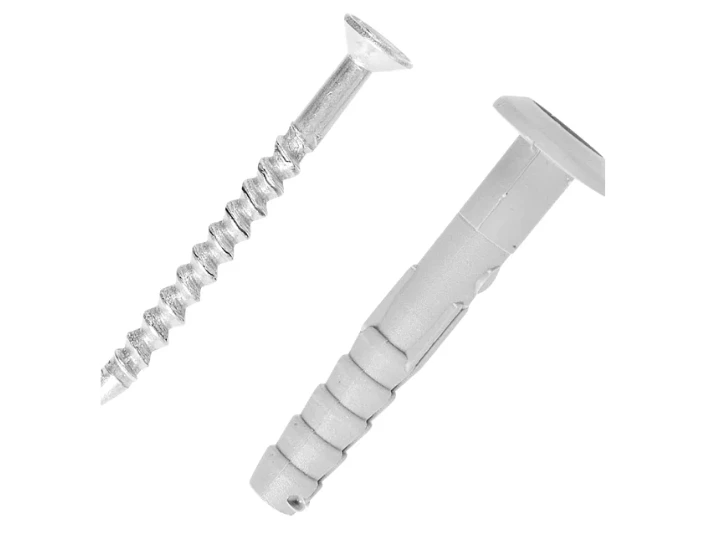 В набор входят 50 пластиковых дюбелей и саморезы для крепления отделки.