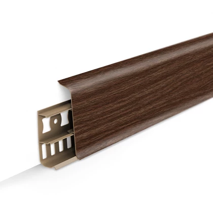 Плинтус напольный имеет продуманный современный дизайн с задним монтажным профилем и цельной лицевой частью.
