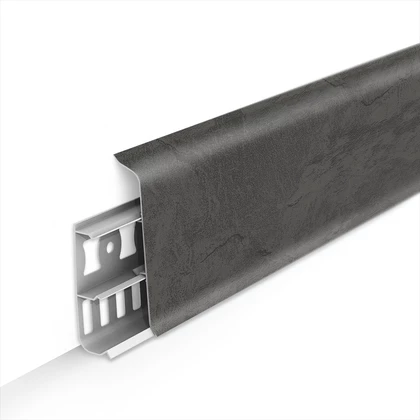 Плинтус напольный имеет продуманный современный дизайн с задним монтажным профилем и цельной лицевой частью.