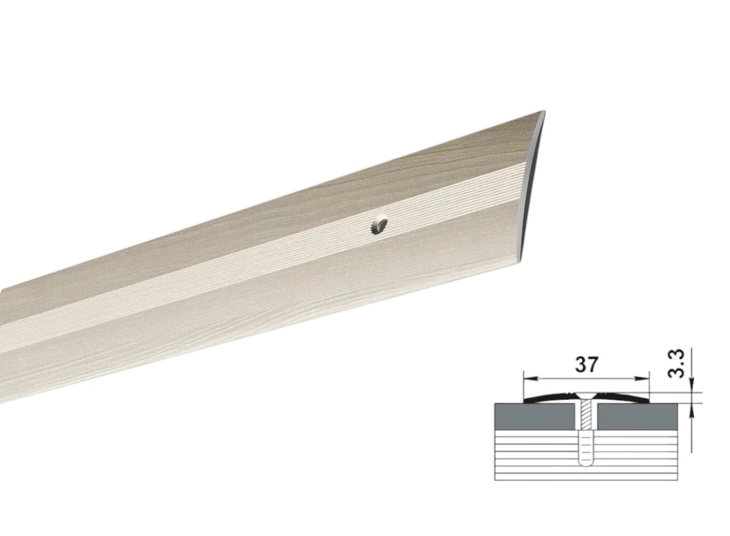 Порог стыкоперекрывающий ПС 03.900.051 в цвете «сосна жемчужная» — функциональный элемент для декоративной отделки стыков между различными напольными покрытиями.