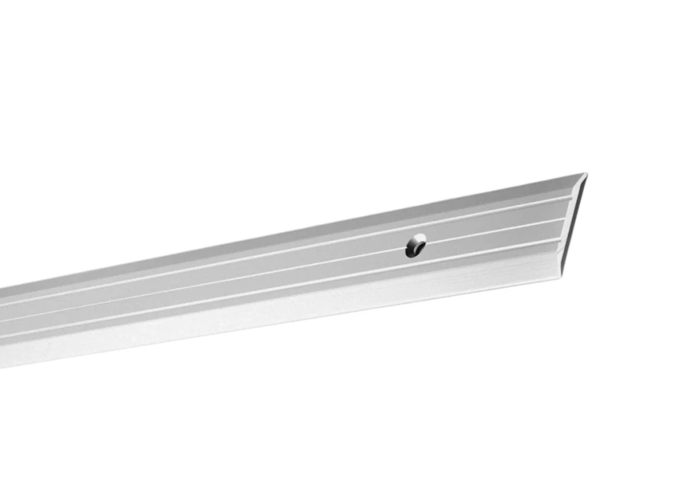 Порог стыкоперекрывающий ПС 01.900.01л «Серебро» — функциональный элемент отделки, предназначенный для эстетичного оформления стыков между различными напольными покрытиями на одном уровне.