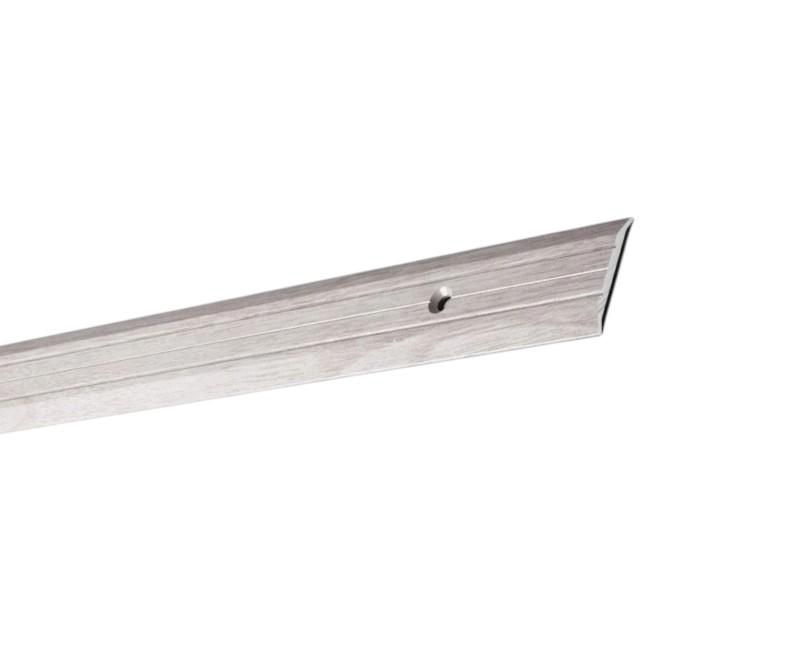 Порог стыкоперекрывающий ПС 01.900.106 в цвете «ясень белый» — декоративный элемент для оформления стыков между различными напольными покрытиями.