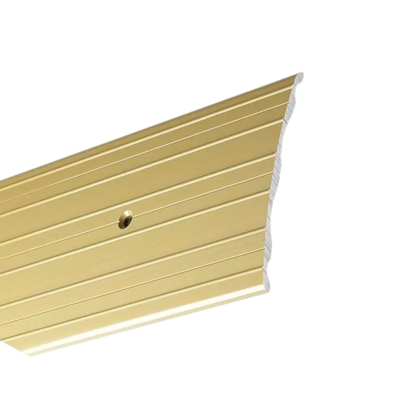 Порог стыкоперекрывающий ПС 07.900.02л в цвете «золото анодированное» — декоративный элемент для оформления стыков между различными напольными покрытиями.