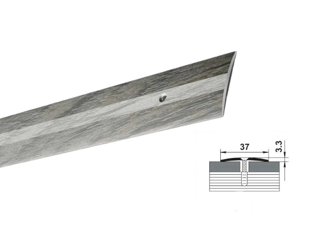 Порог стыкоперекрывающий ПС 03.1350.050 в цвете «дуб муссон грей» — декоративный элемент для оформления стыков между различными напольными покрытиями.