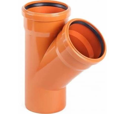 Тройник ПП для наружной канализации SN4 Ду 110х110х45° используется для устройства разветвлений канализационных трубопроводов при строительстве.