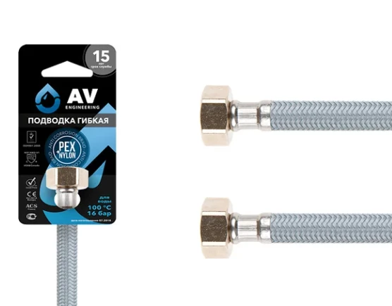 Гибкая подводка для воды AV Engineering nylon Lt гайка 1/2" - гайка 1/2" 100 см предназначена для подключения отдельного сантехнического оборудования к основной системе водоснабжения и изготавливается только из высококачественных материалов, что обеспечивает высокую эластичность и многолетнюю исправную работу.