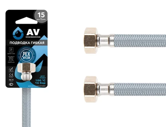 Гибкая подводка для воды AV Engineering  гайка 1/2" - гайка 1/2" 120 см предназначена для подключения отдельного сантехнического оборудования к основной системе водоснабжения и изготавливается только из высококачественных материалов, что обеспечивает высокую эластичность и многолетнюю исправную работу.