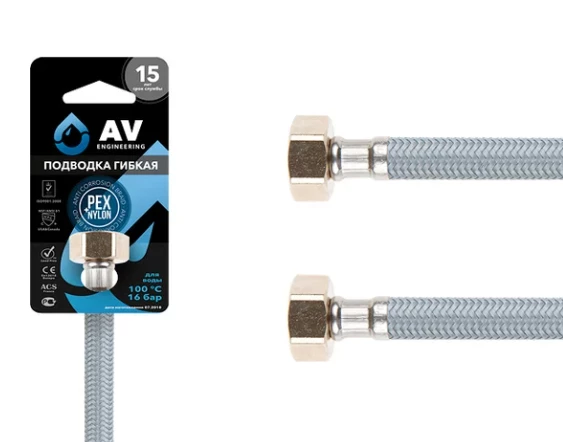Гибкая подводка для воды AV Engineering nylon Lt гайка 1/2" - гайка 1/2" 50 см AVE20850 предназначена для подключения отдельного сантехнического оборудования к основной системе водоснабжения и изготавливается только из высококачественных материалов, что обеспечивает высокую эластичность и многолетнюю исправную работу.