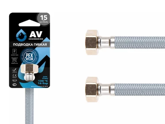 Гибкая подводка для воды AV Engineering nylon Lt гайка 1/2" - гайка 1/2" 80 см AVE20880 предназначена для подключения отдельного сантехнического оборудования к основной системе водоснабжения и изготавливается только из высококачественных материалов, что обеспечивает высокую эластичность и многолетнюю исправную работу.