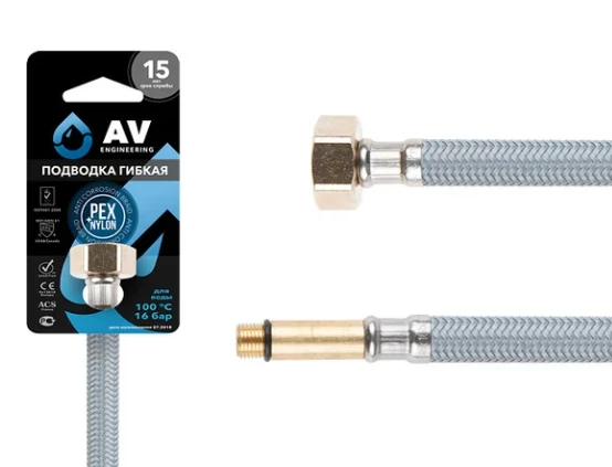 Гибкая подводка для воды AV Engineering nylon Lt иголка М10 длинная - гайка 1/2" 150 см AVE210150 предназначена для подключения отдельного сантехнического оборудования к основной системе водоснабжения и изготавливается только из высококачественных материалов, что обеспечивает высокую эластичность и многолетнюю исправную работу.