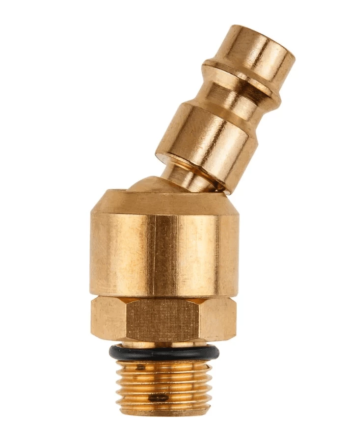 Конструктивная особенность: встроенный поворотный шарнир (позволяет вращать соединение на 360° без перекручивания шланга)