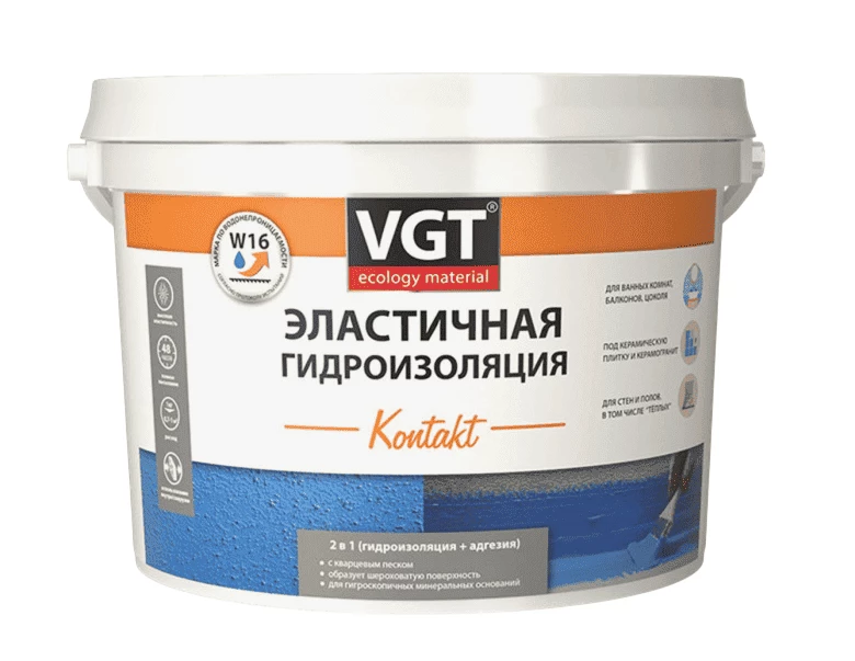 а также для гидроизоляции гигроскопичных минеральных оснований (известково-цементных и цементных штукатурок, цементных стяжек, бетона, пористого бетона).
