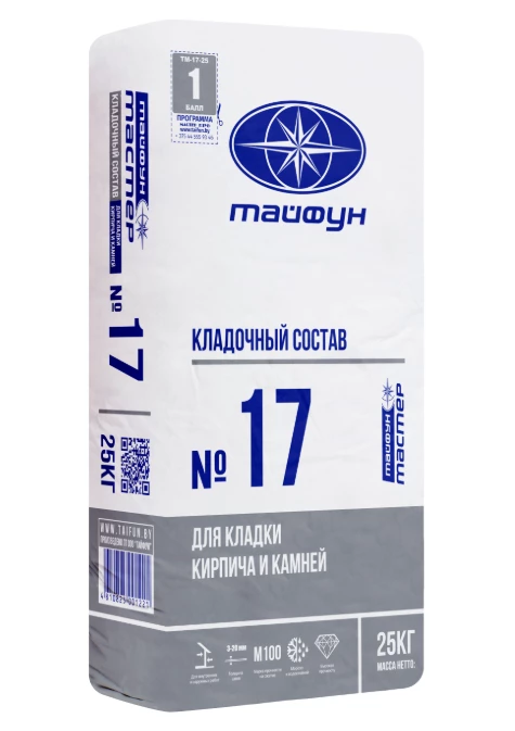 Применение при устройстве кладки сухой смеси «Тайфун Мастер» №17 (№17М) гарантирует одинаковые рабочие свойства и стабильные технические параметры.