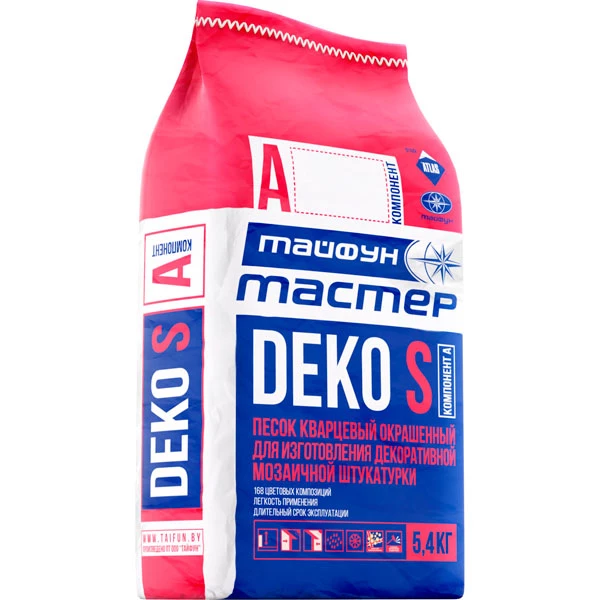 Песок кварцевый для штукатурки декоративной Тайфун Мастер Deko S предназначен для приготовления штукатурки,