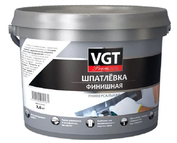 Шпатлевка акриловая финишная VGT премиум 3,6 кг 11612079 - готовая к применению финишная малоусадочная шпатлёвка.