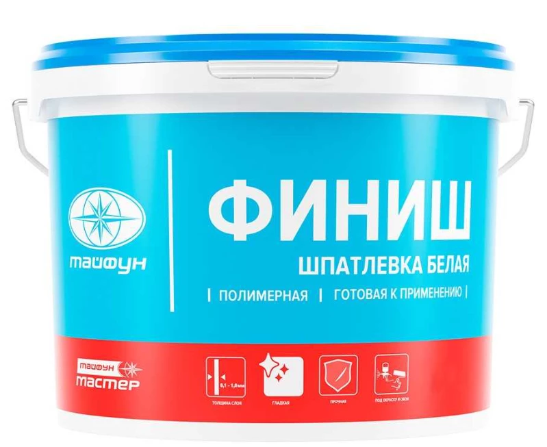 Оптимально подобранный состав шпатлевки «Тайфун Мастер» ФИНИШ на основе полимерного связующего, наполнителей и специальных добавок позволяет: