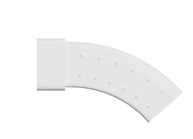 При монтаже колена, в зависимости от выбранного угла поворота, отрезается необходимое количество сегментов, с одной стороны, шаг каждого сегмента 7.50 °.