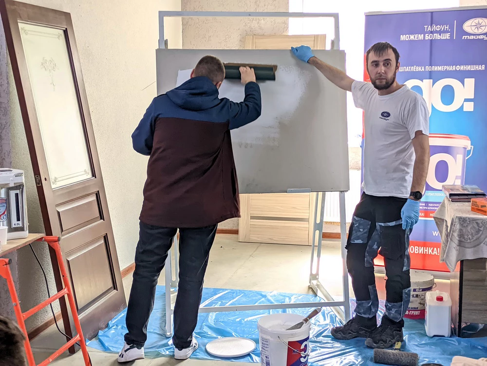 Присутствующие мастера имели возможность познакомиться с новыми продуктами компании "Тайфун" и обсудить их. После теоретической части предоставилась возможность опробовать представленные материалы на практике.